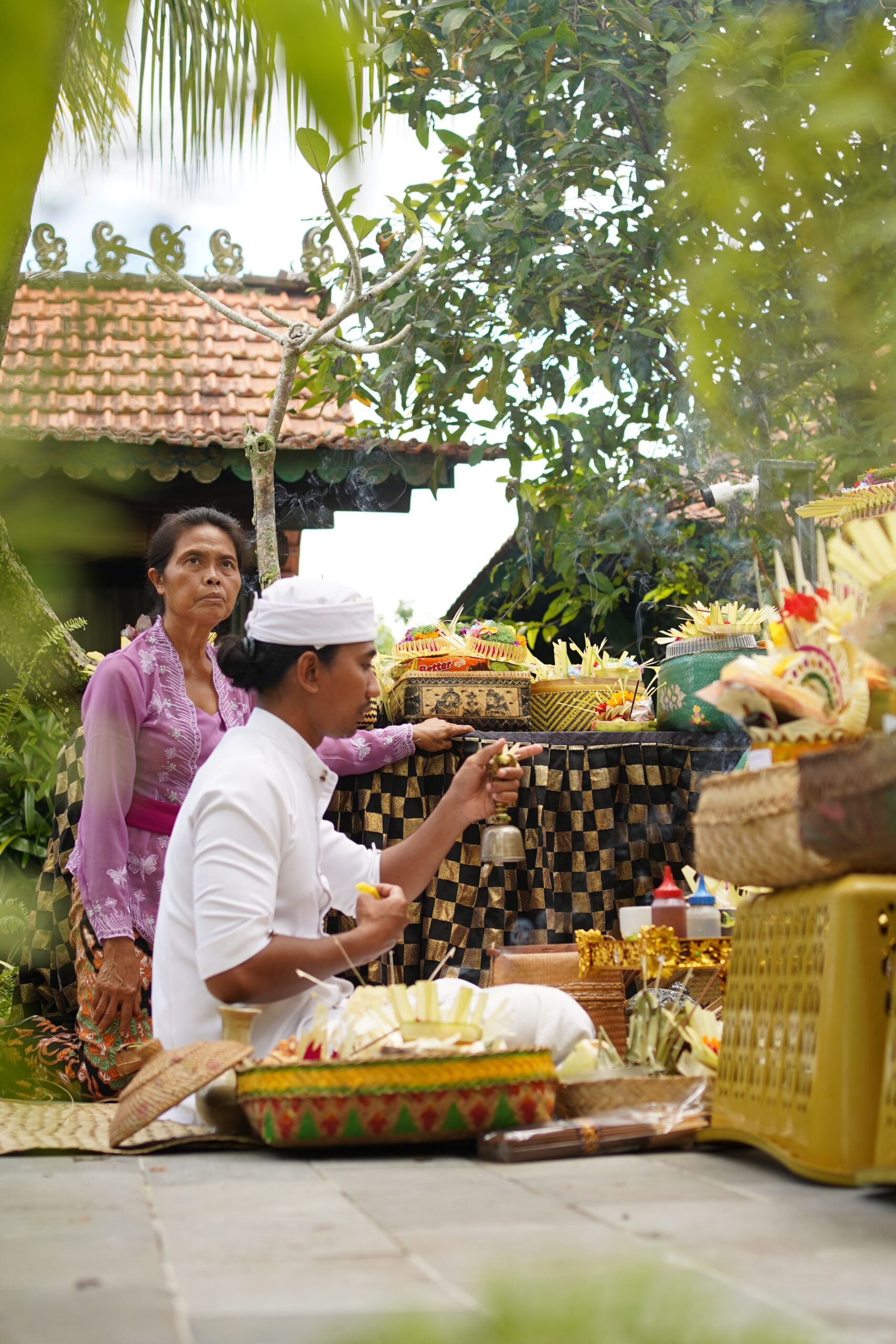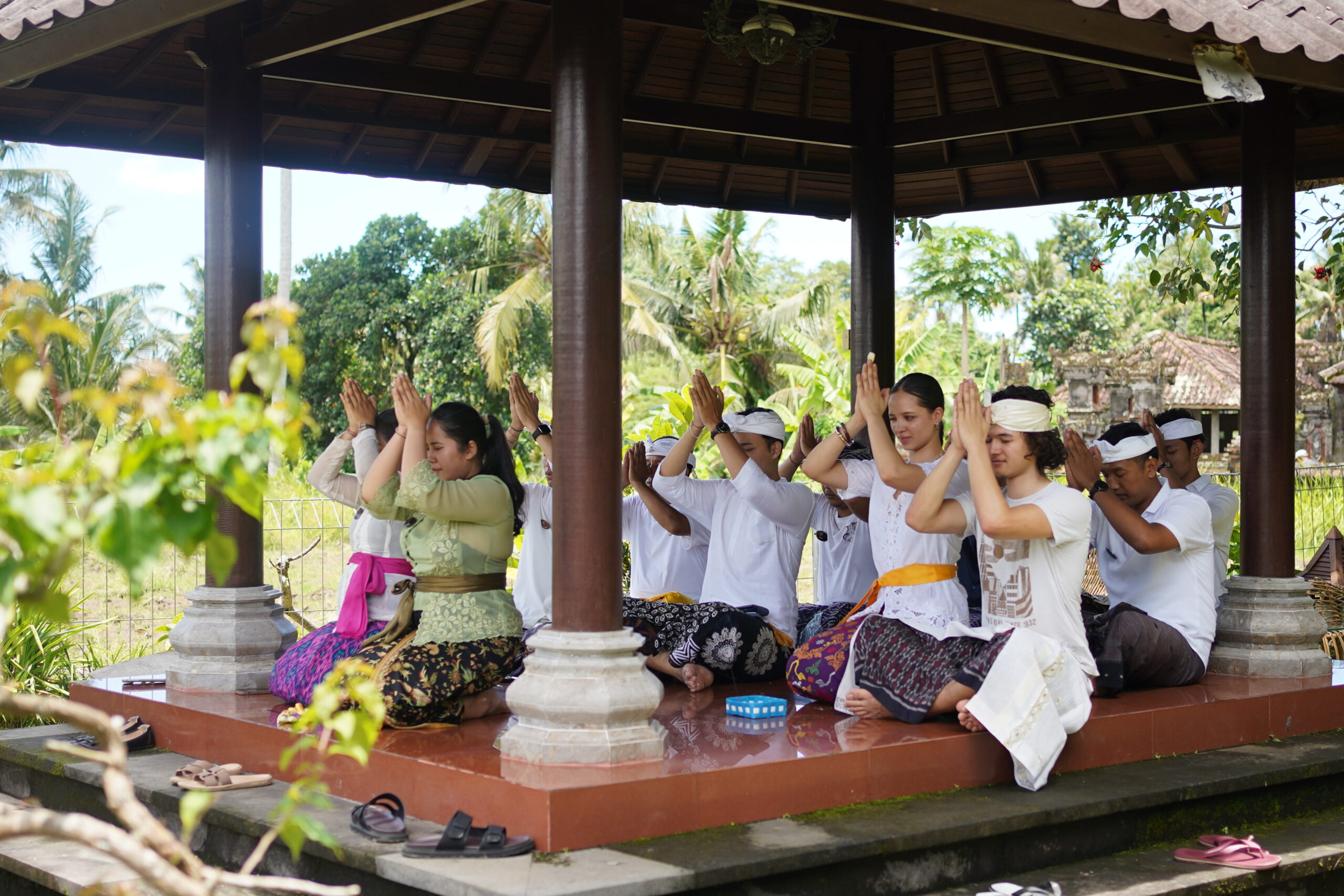 In Balinese Hindu tradition, the celebration of Saraswati is marked by special prayers and offerings, both at family temples (sanggah or merajan) and at schools or libraries, as knowledge is revered as sacred. From morning until noon, the community prepares ceremonial items such as banten peras and canang sari, along with offerings specifically dedicated to sacred texts (lontar) and books. On this holy day, people pray for wisdom, understanding, and spiritual enlightenment for themselves, their families, and the younger generation.